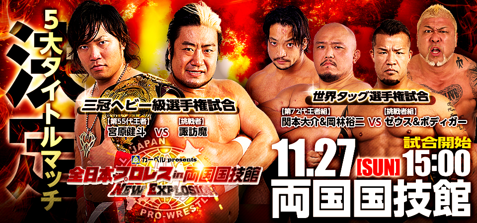 All Japan Pro Wrestling presented a big show this morning, held at Sumo Hall in Tokyo. Four titles were on the line, including the Triple Crown as Suwama challenged champion Kento Miyahara.