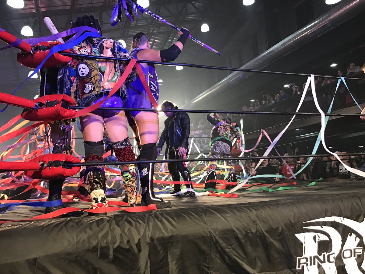 Referee Todd Sinclair raised Daryl’s paw after the match. The crowd started chanting “Shake his paw” before Daniels and Takahashi embraced, but Daryl struck Daniels to get his revenge. Daniels then stumbled out and tried to attack one of the Daryls in the crowd before being restrained by security.