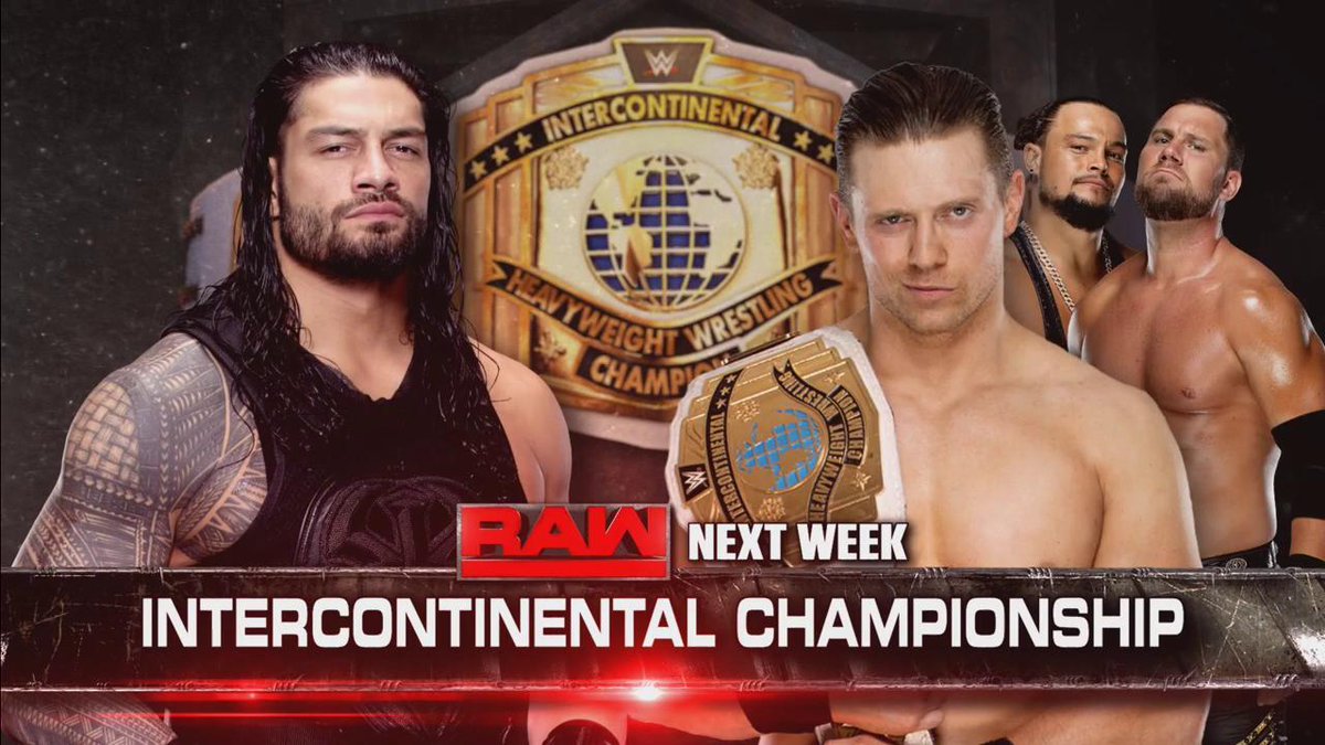 Continuing their storyline that began last night, Roman Reigns will be getting a shot at The Miz’s Intercontinental Championship on next week’s episode of Raw.