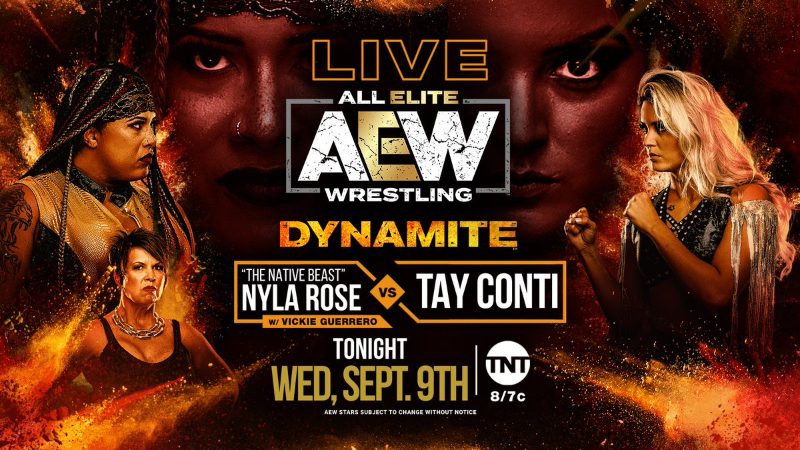 Former AEW Women’s World Champion Nyla Rose (with Vickie Guerrero) will take on Tay Conti, fresh off the news of her contract signing with the company. Rose has wrestled just five times since losing the title at May’s Double or Nothing and is coming off a mid-August win over KiLynn King on Dark. This will be Conti’s first singles match since being released from NXT.