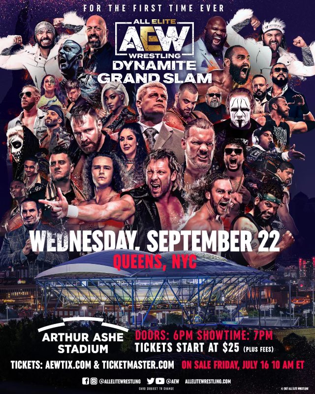 The show is part of a run of big events for the company that begins with All Out week in Chicago and continues with their rescheduled Newark, NJ, show the following Wednesday which has more than 10,000 tickets sold. AEW Dynamite: Grand Slam will then be the following Wednesday.