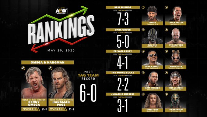 Best Friends are now ranked first in the tag division, moving up one spot and overtaking The Dark Order. Private Party have also moved up two spots and are now ranked third.