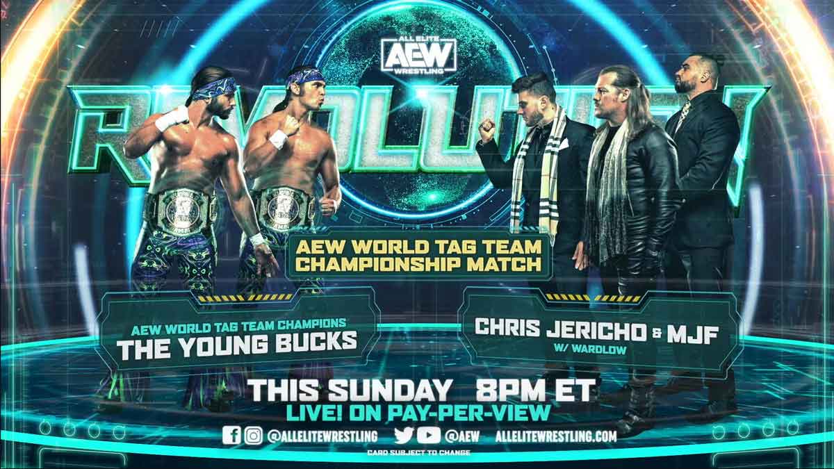 While there are plenty of questions to be answered at Sunday’s AEW Revolution, one can be answered already as the show opener will be AEW Tag Team Champions the Young Bucks vs. Chris Jericho and MJF kicking things off.