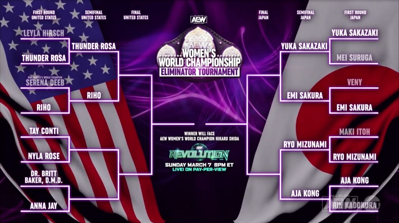 The winner of the tournament will face current Women’s Champion Hikaru Shida at Revolution on Sunday, March 7th.