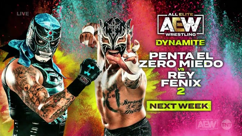 In a rematch from the first round of the AEW World title eliminator tournament, Penta El Zero Miedo will face Rey Fenix on next Wednesday’s AEW Dynamite.
