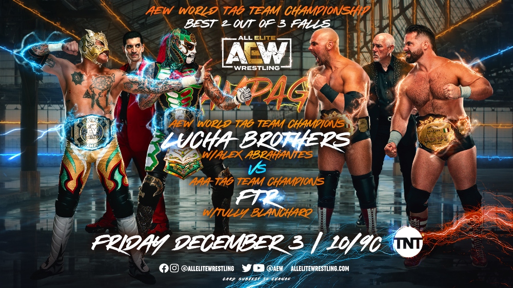 TNT Champion Sammy Guevara will defend against Tony Nese while AEW Tag Team Champions The Lucha Brothers will defend against FTR in a 2-out-of-3 falls match on next Friday’s AEW Rampage.