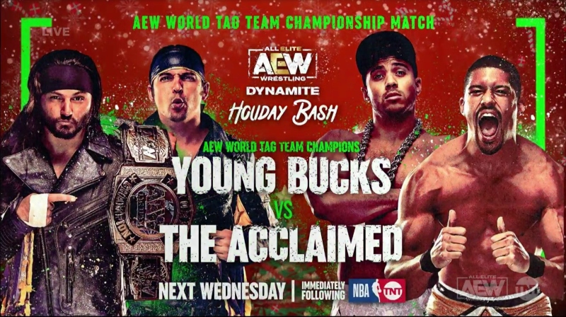 The Young Bucks will look for the first defense of their AEW Tag Team Titles on next Wednesday’s Holiday Bash edition of AEW Dynamite.