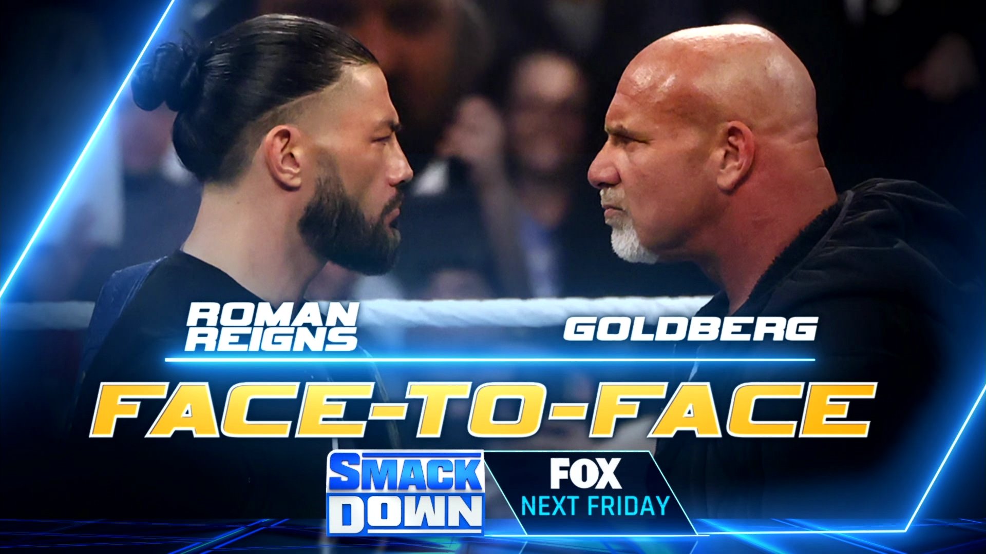Roman Reigns, Goldberg face-to-face set for next week’s WWE SmackDown