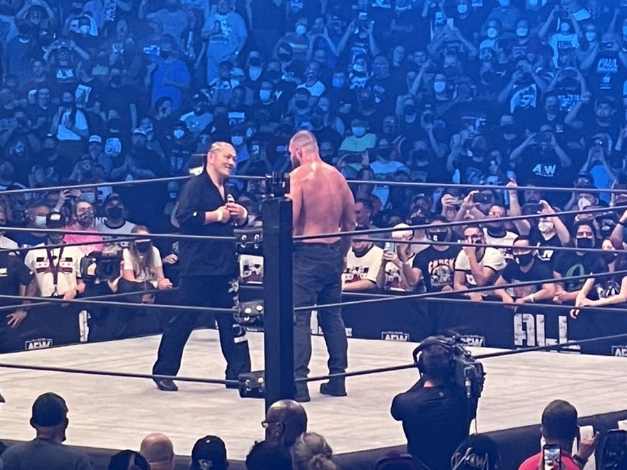 NJPW’s Minoru Suzuki confronts Jon Moxley at AEW All Out