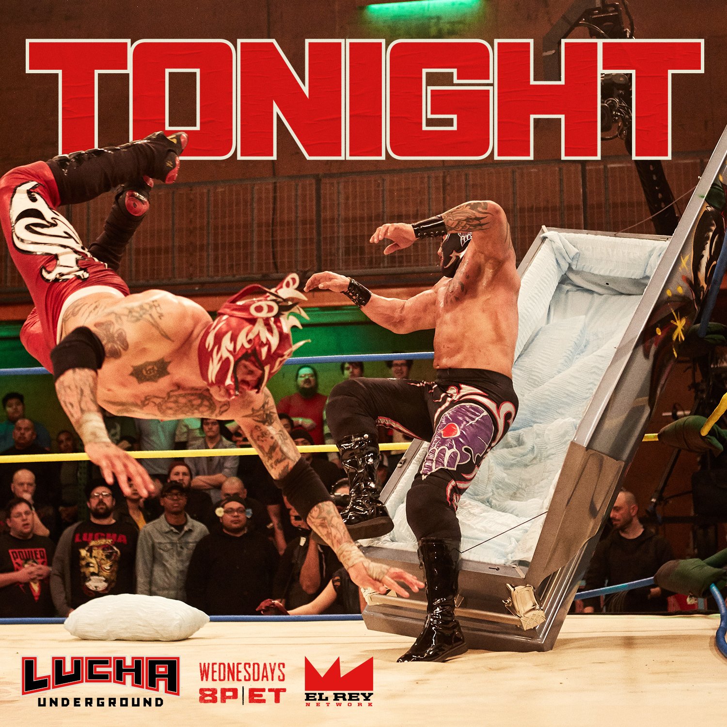 Crane hit a piledriver while jumping backwards on Fenix through a table and rolled him into a casket. Crane pointed at Catrina, who pointed back at him. Before he could shut it, Ivelisse came out and busted him open with the hammer, knocking Crane into the coffin and shutting it, eliminating Crane.