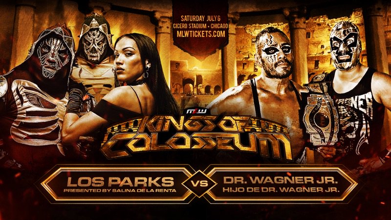 Dr. Wagner Jr. & El Hijo de Dr. Wagner Jr. vs. LA Park & El Hijo de LA Park is the first match announced for Kings of Colosseum. MLW noted that it will be part of a double main event.