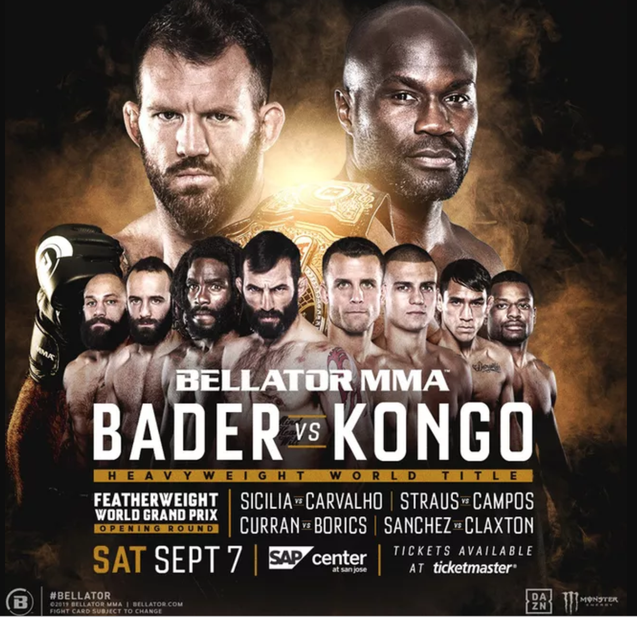 Bader defeated Fedor Emelianenko in the finals of the Heavyweight Grand Prix earlier this year to win the belt, completing a tournament in which two of the bouts lasted less than 35 seconds. Kongo, a fixture in Bellator since 2013, is riding an eight fight win streak.