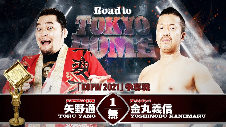After a year of provisional title matches, the ultimate KOPW match of 2021 took place under rules that required Yano and Kanemaru to drink whiskey during their match at intervals. Yano pinned Kanemaru after hitting a powerbomb, and also after Kanemaru spit whiskey into the eyes of the referee. Fans chose which alcoholic beverage would be served to the wrestlers in polls on NJPW’s Twitter accounts.