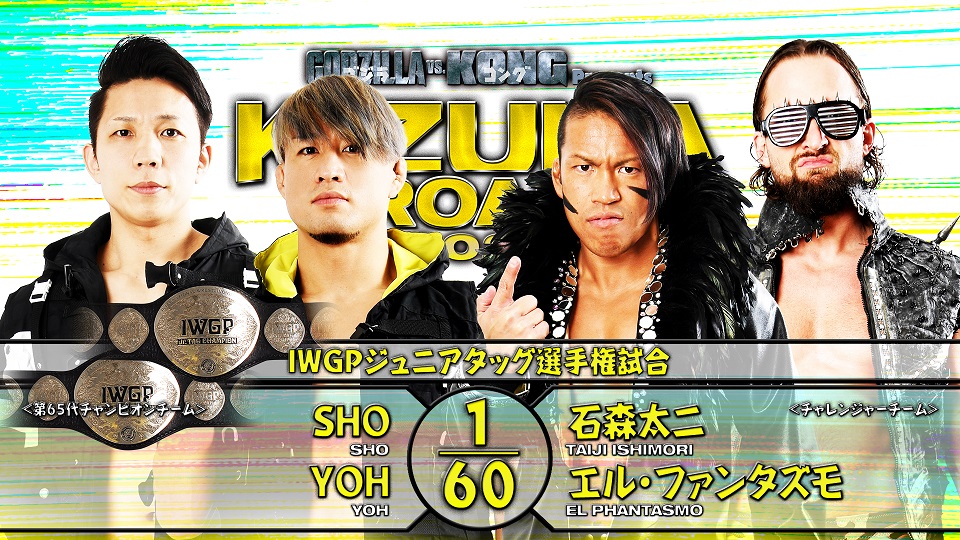 The IWGP Junior Heavyweight Tag Team Championships were on the line in the main event as SHO & YOH defended against Taiji Ishimori and El Phantasmo.