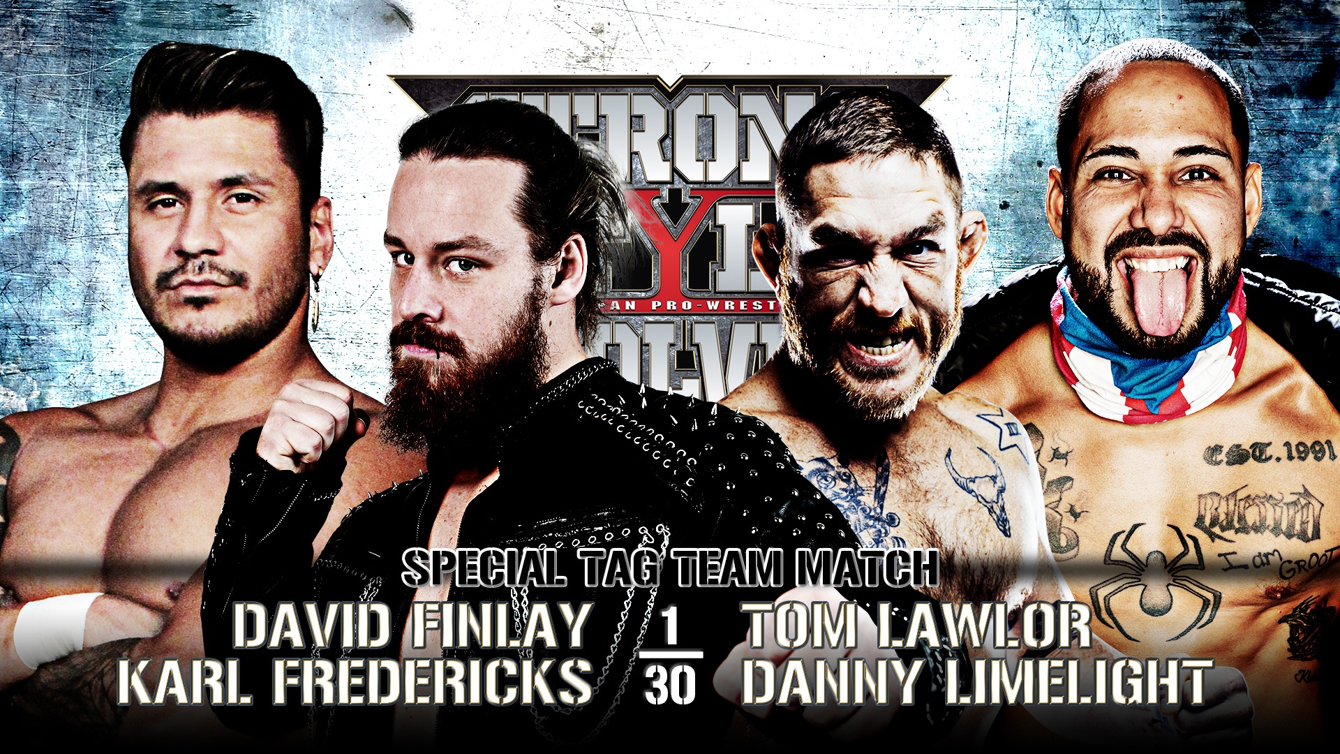Karl Fredericks & David Finlay defeated Team Filthy (“Filthy” Tom Lawlor & Danny Limelight w/ JR Kratos)