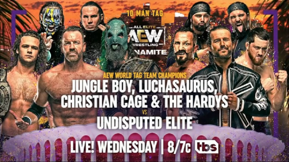- Jungle Boy, Luchasaurus, Christian Cage, Matt Hardy & Jeff Hardy vs. Adam Cole, Bobby Fish, Kyle O’Reilly & The Young Bucks