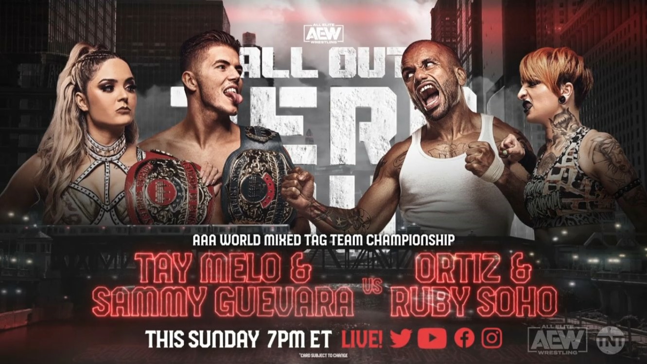 In a match announced on Friday’s Rampage, Sammy Guevara and Tay Melo will defend the AAA Mixed Tag titles against Ortiz and Ruby Soho.