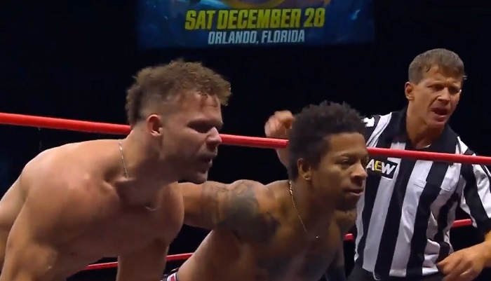 During the December 14 taped episode of AEW Collision: Winter is Coming, a number one contender bout took place to determine who will be the next challengers for reigning AEW World Tag-Team Champions Private Party. The high stakes bout saw the new makeshift duo of Action Andretti & Lio Rush emerge victorious over the more established Top Flight. The finish saw Andretti hit a 450 splash on Darius Martin to score the pinfall victory for his team.