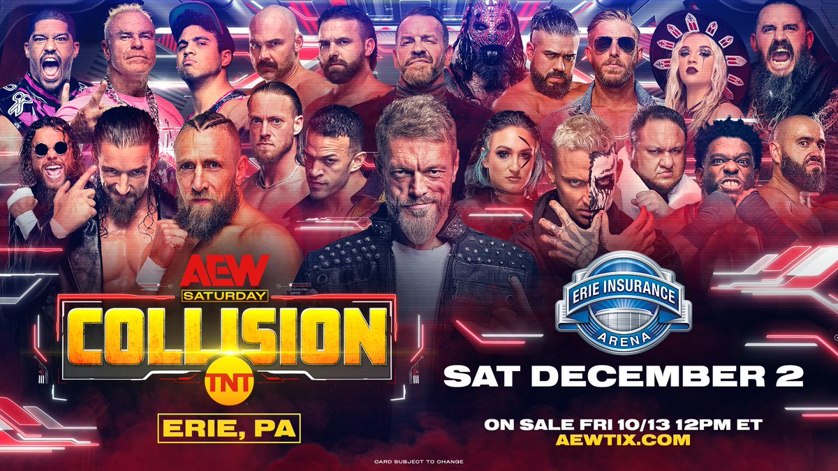 Just announced last night on #AEWDynamite, #AEW makes its Erie, PA debut with #AEWCollision on Saturday, December 2, at the @_ErieEvents!
