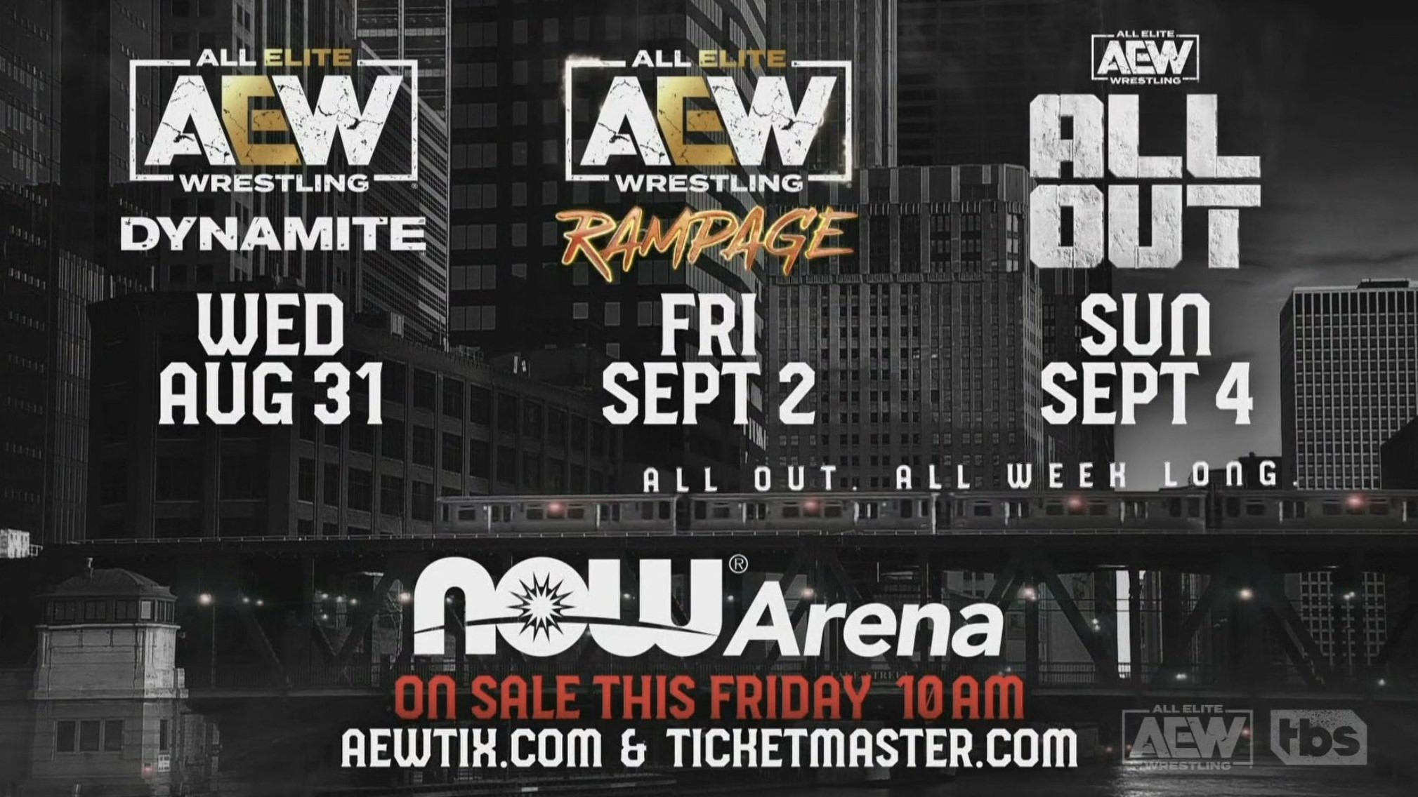 The NOW Arena in Hoffman Estates, Illinois will again host the show. Additionally, the building will also host Dynamite and Rampage in the days leading up to All Out, with Dynamite set for Wednesday, August 31, and Rampage for Friday, September 2.