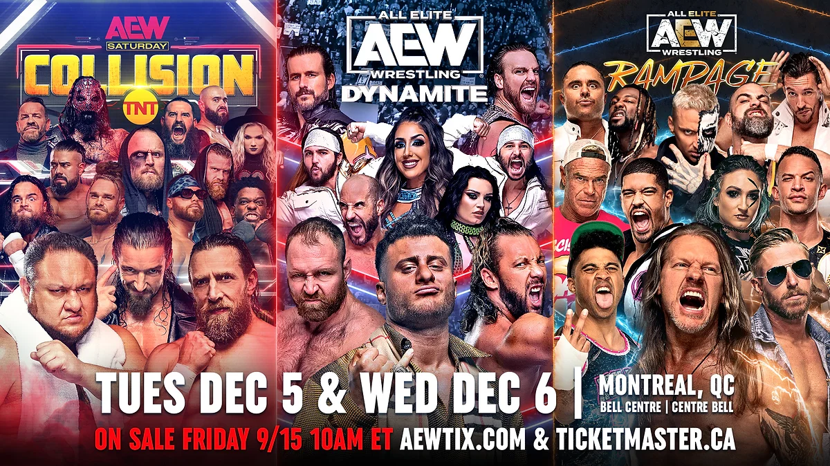 First reported in July, AEW has announced they will debut in Montreal, Quebec, Canada, this December with both Dynamite and Collision.