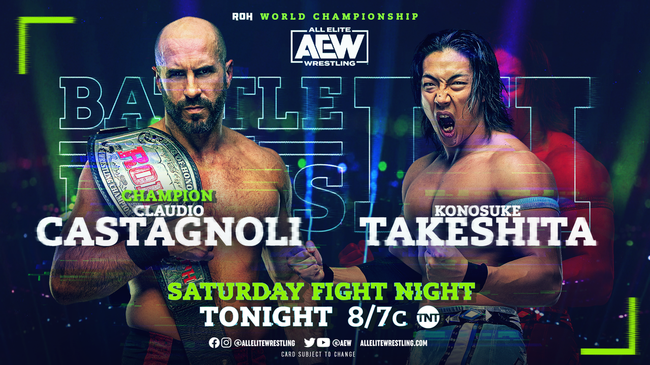 The third-ever AEW Battle of the Belts special on TNT will be headlined by Ring of Honor World Champion Claudio Castagnoli defending against Konosuke Takeshita.