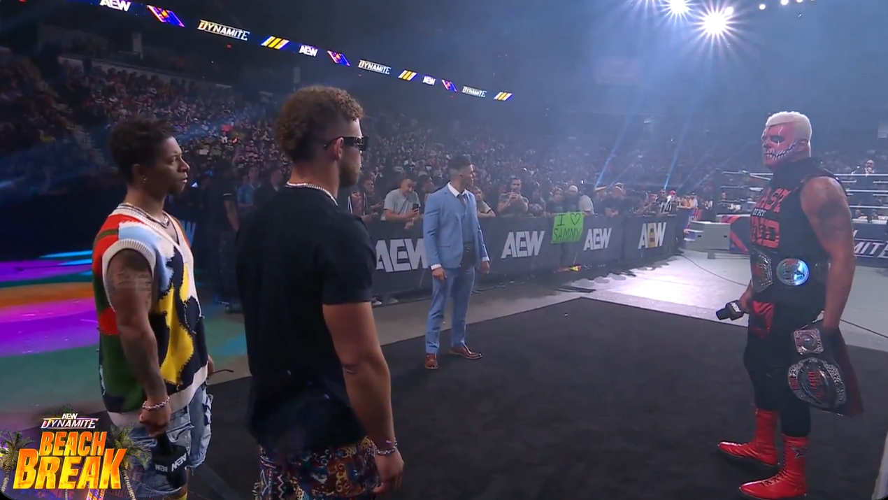 ROH Tag Team Champions Dustin Rhodes and Sammy Guevara will face Lio Rush and Action Andretti of The Cru on Saturday’s Collision Beach Break episode in a number one contender’s match, with the winners moving on to Double or Nothing to challenge Bobby Lashley and Shelton Benjamin for the AEW Tag Team titles.
