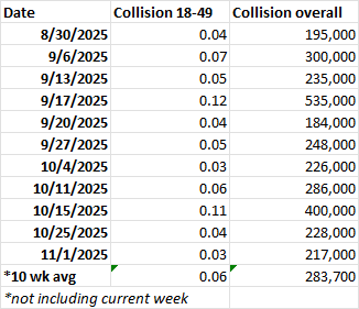 Listed below are the last 11 weeks of viewership numbers and 18-49 demo ratings for Collision, as well as the 10-week average in both categories. This week’s episode was down 23.5 percent in viewers and 50 percent in 18-49 as compared to the recent averages.