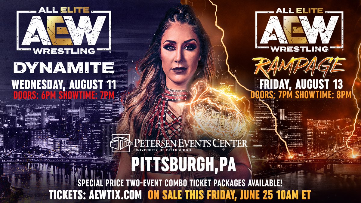 It was announced today that the Wednesday, August 11 episode of AEW Dynamite will take place at the Petersen Events Center in Pittsburgh, Pennsylvania. AEW will then be back at the Petersen Events Center two days later for the premiere of AEW Rampage on Friday, August 13.