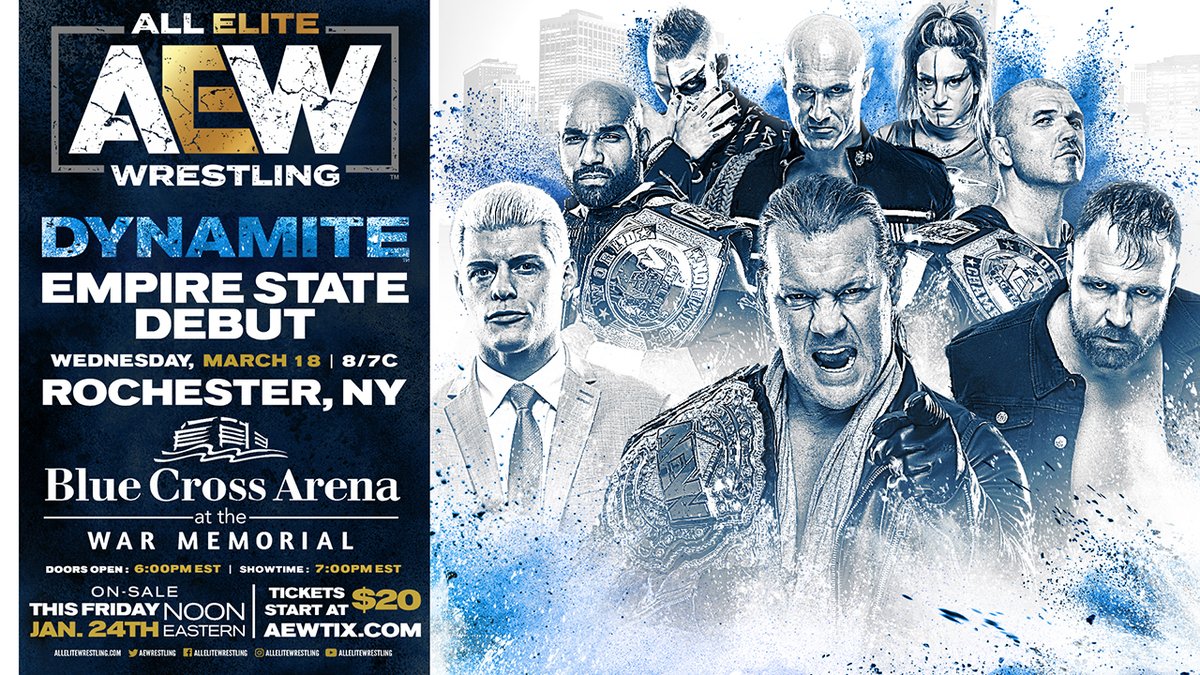 The promotion announced today that the Wednesday, March 18 episode of Dynamite will take place at Rochester’s Blue Cross Arena. Tickets for the show will go on sale this Friday (January 24) at noon Eastern time.
