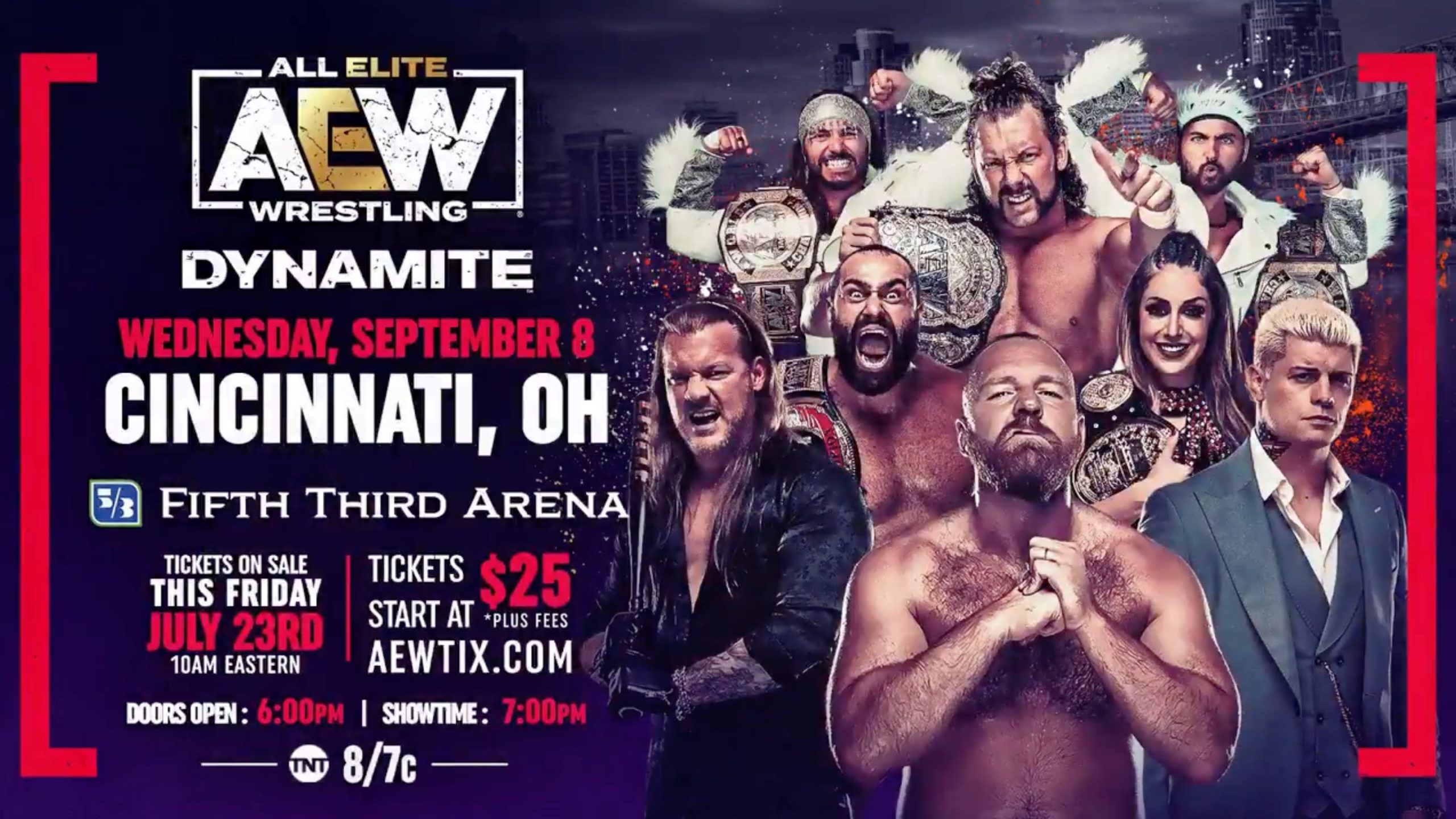 “See all the fall out from #AEWAllOut when #AEW makes it’s CINCINNATI, OHIO debut on Wed, Sept. 8, 2021 at the FIFTH THIRD ARENA on the University of Cincinnati Campus,” AEW wrote. “Tickets start at $25 (plus fees) and go on sale THIS FRIDAY, July 23 at 10am Eastern”