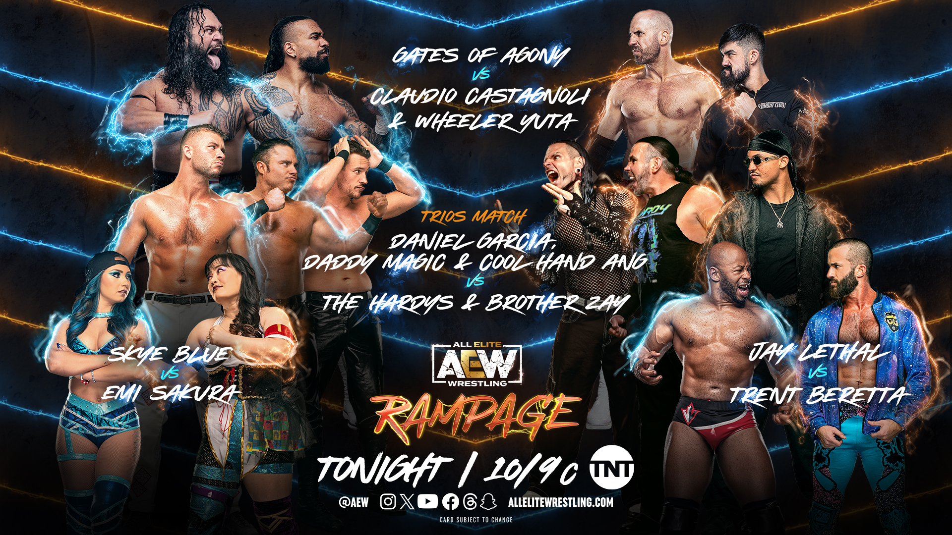In a trios match, former Jericho Appreciation Society members Daniel Garcia, “Daddy Magic” Matt Menard, & “Cool Hand Ang” Angelo Parker will face Matt Hardy, Jeff Hardy, & Brother Zay on tonight’s episode.