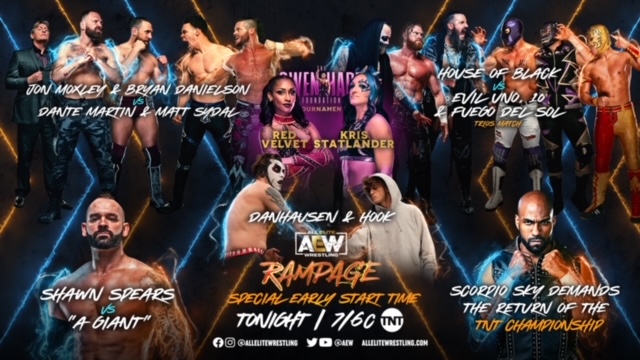 The show will feature several promos as TNT Champion Scorpio Sky will demand his belt be returned by former champion Sammy Guevara. Danhausen & Hook will also be heard from in addition to Britt Baker and Toni Storm ahead of their match Wednesday.