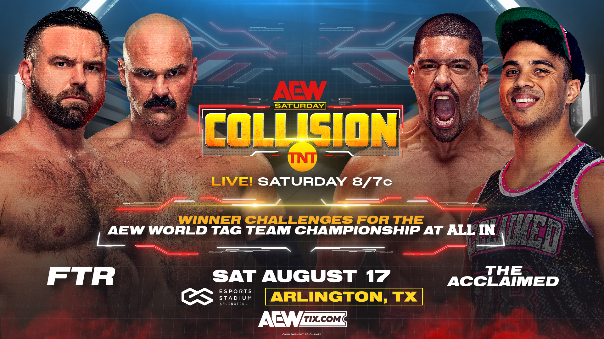 The challengers for the AEW Tag Team title at this month’s All In will decided on tonight’s AEW Collision from Arlington, Texas.