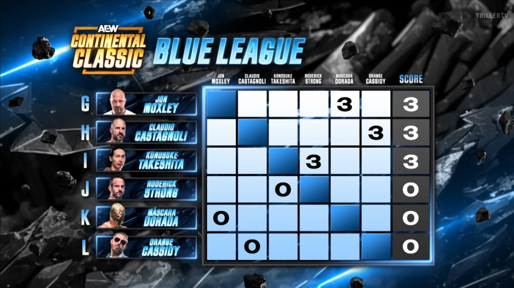 - C2 Blue League Match: Jon Moxley (3) vs. Claudio Castagnoli (3)