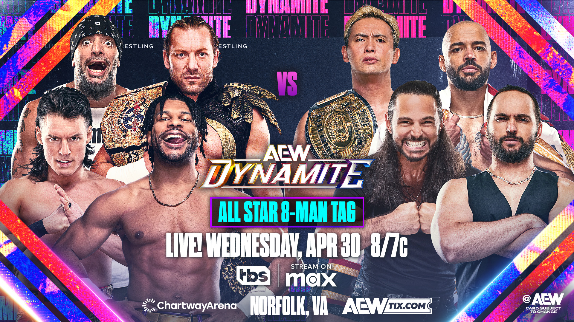 AEW Dynamite airs live tonight from Norfolk, Virginia with an eight-man tag featuring Kenny Omega and Kazuchika Okada in the same bout for the first time in over two years.