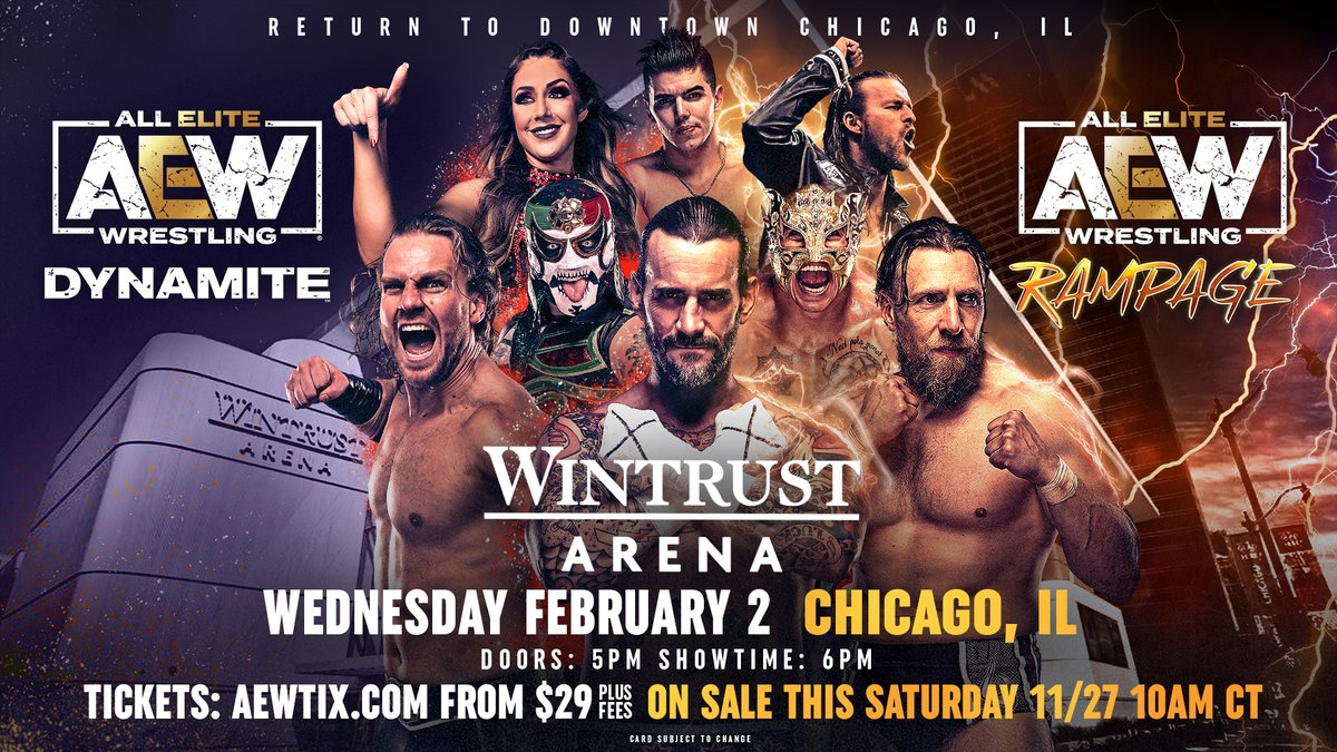 AEW wrote: “As just announced to the live crowd in Chicago by @AEW GM @TonyKhan & The Best in the World @CMPunk, #AEW returns to @WintrustArena February 2nd for #AEWDynamite / #AEWRampage! Tickets make great holiday gifts and go on sale THIS SAT (11/27) at 10 am CT – AEWTIX.com”