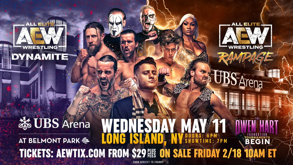 ♥️#HappyValentinesDay♥️ #AEW returns to Long Island & the @UBSArena Wed, May 11 for a LIVE #AEWDynamite & #AEWRampage Taping featuring opening round matches of the #OwenHart Foundation Men's & Women's Tournament! On-sale THIS FRIDAY, Feb 18 at 10am ET