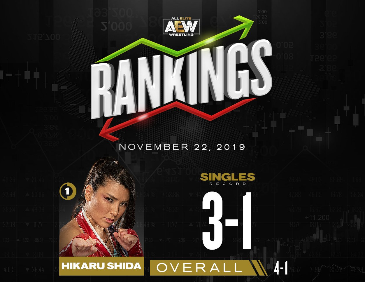 In a matchup of the top two contenders in the women’s division, Shida defeated Baker on this week’s Dynamite. Shida has moved up to first in the rankings, while Baker has fallen to second.