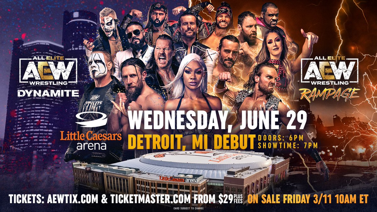 It was announced today that AEW will make its Detroit, Michigan debut at Little Caesars Arena on Wednesday, June 29. There will be a live Dynamite episode that night, along with tapings for that week’s edition of Rampage.