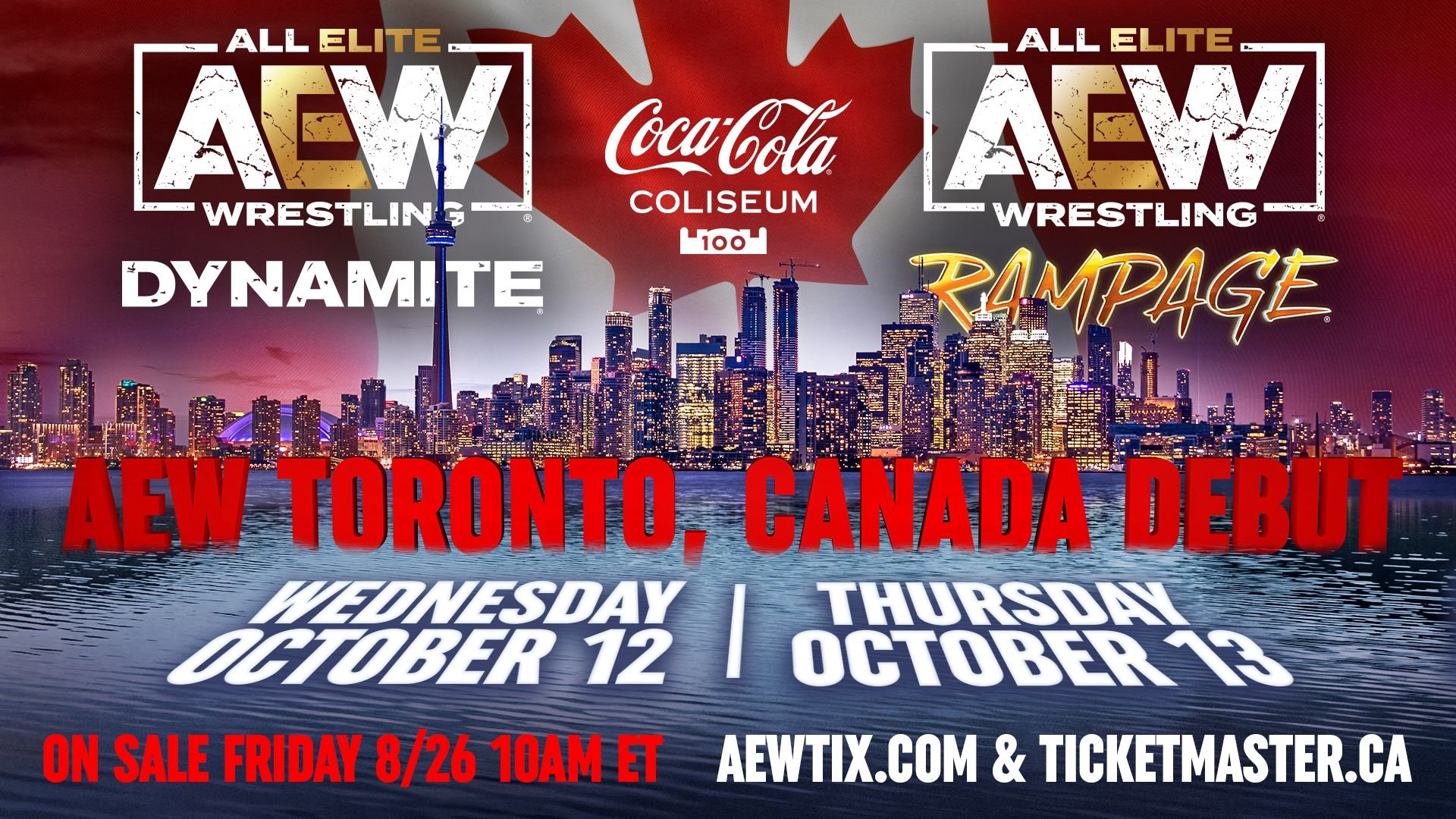 The company announced during Wednesday’s Dynamite that they will be making their debut in Toronto on Wednesday, October 12 for AEW Dynamite, followed by AEW Rampage on Thursday, October 13 for AEW Rampage.