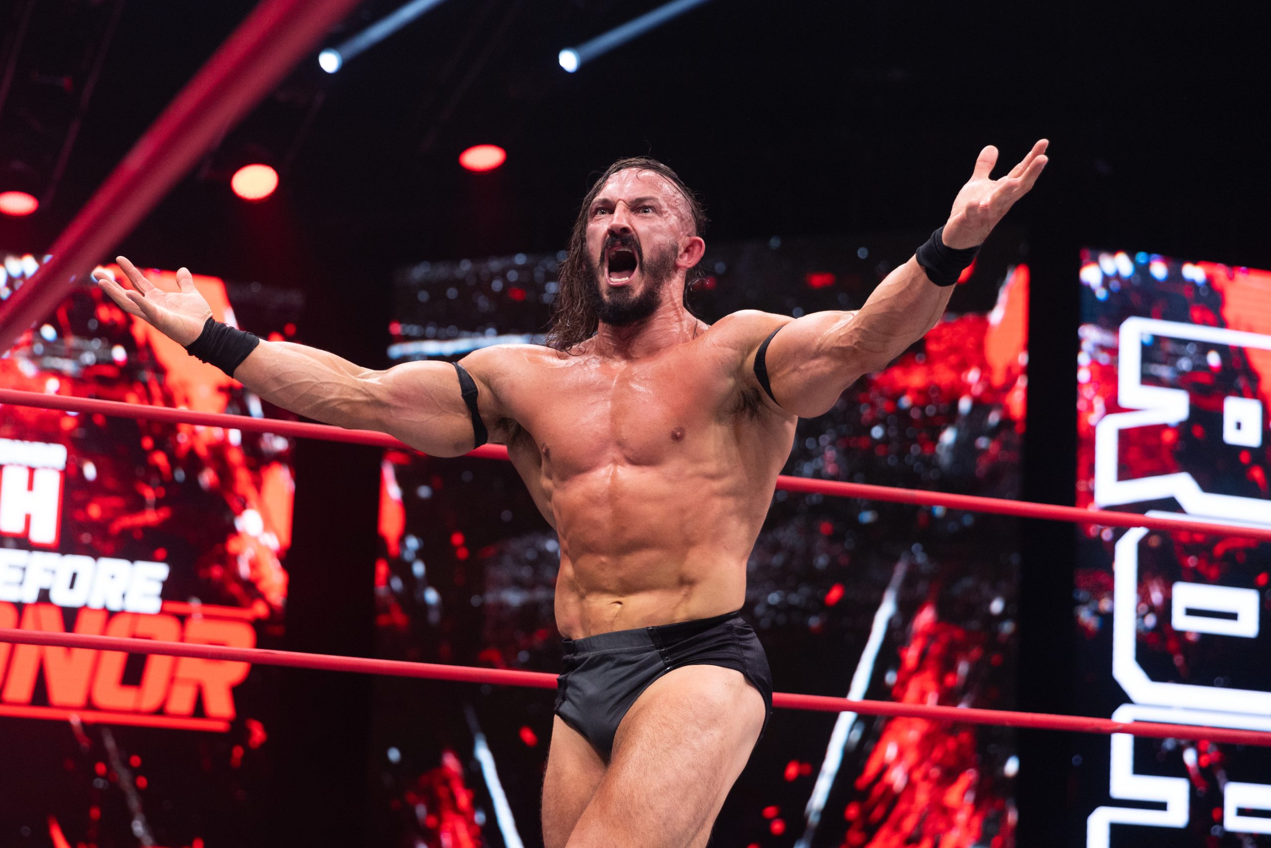 PAC had only wrestled three times since returning from injury last month. He participated in a Blood & Guts match, teaming with the Blackpool Combat Club and Konosuke Takeshita in a losing effort against The Golden Elite (Hangman Page, Kenny Omega, Kota Ibushi, and The Young Bucks). PAC ended up walking out of the match after a confrontation with Claudio Castagnoli. The two ended up facing each other at Death Before Dishonor, with Castagnoli defeating PAC to retain the ROH World title.