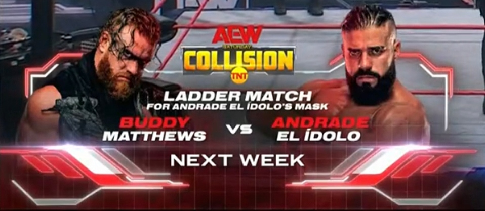 Andrade El Idolo will have a chance to get his treasured mask back from the House of Black’s Buddy Matthews in a ladder match on next Saturday’s AEW Collision.