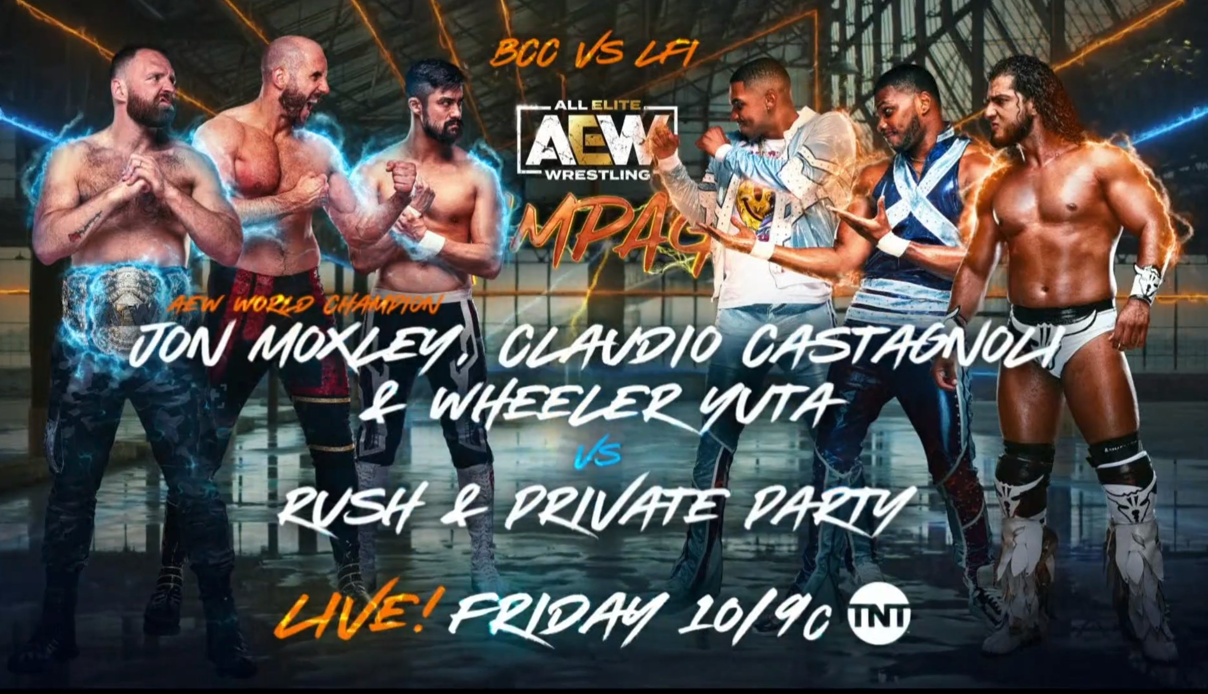 Following the events of AEW Dynamite, the Blackpool Combat Club will take on LFI on Friday’s live Rampage as AEW World Champion Jon Moxley, Wheeler Yuta & Claudio Castagnoli will team up against Rush & Private Party in trios action.