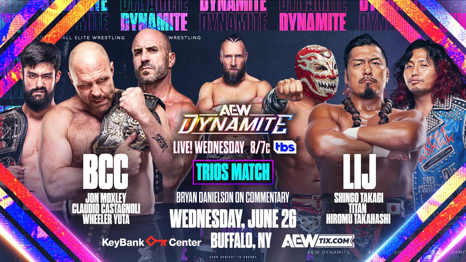 Tony Khan announced on social media that Jon Moxley, Wheeler Yuta, and Claudio Castagnoli will face the LIJ team of Shingo Takagi, Hiromu Takahashi, and Titan of CMLL on Dynamite. This comes just days before Moxley is set to defend the IWGP World Heavyweight Championship against LIJ member Tetsuya Naito at Forbidden Door. Bryan Danielson, who will face Takagi at Forbidden Door, will be on commentary.