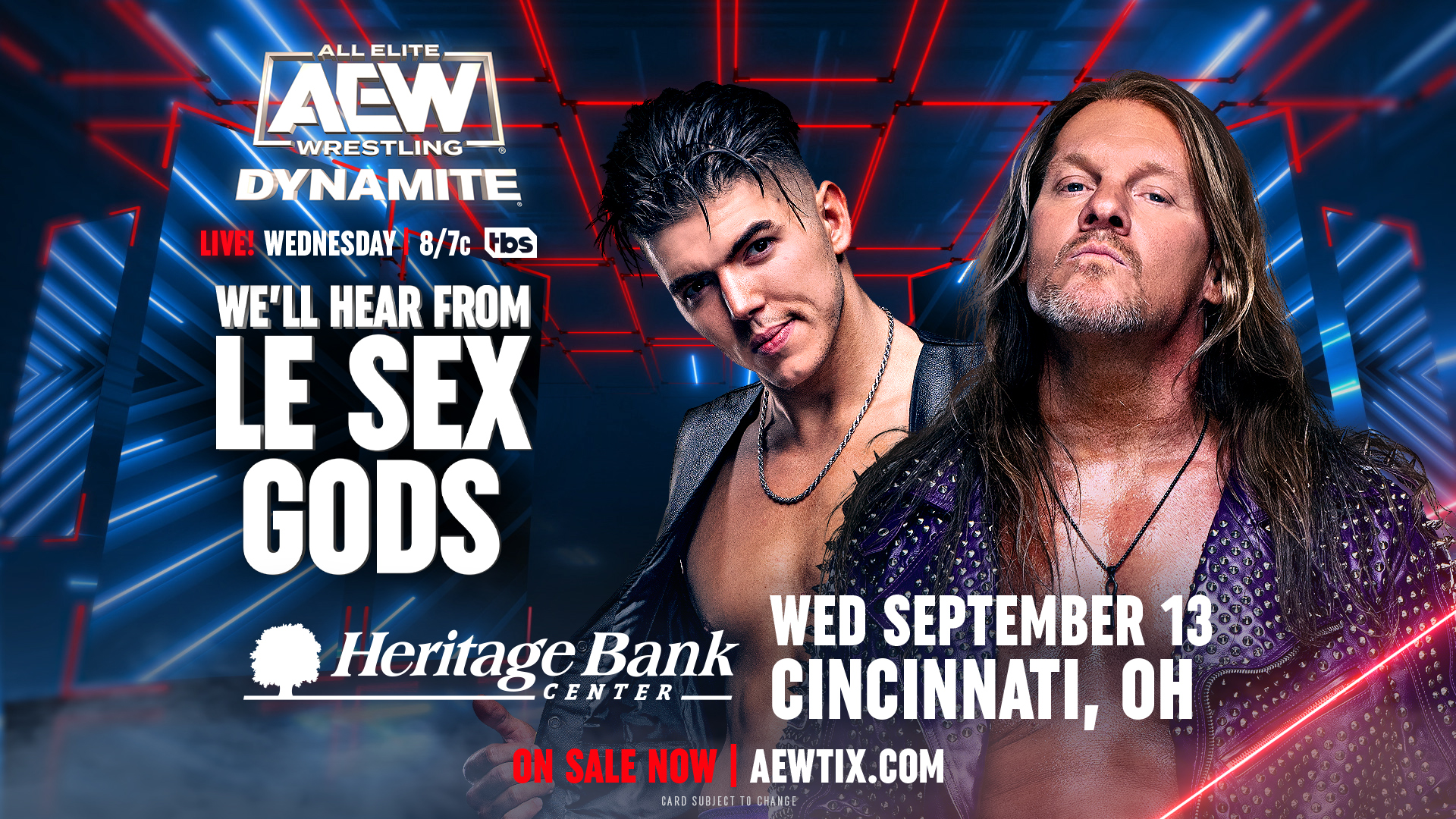 8pmET/7pmCT on @TBSNetworkWe'll hear from #LeSexGods @IAmJericho & @sammyguevara, before they going 1-on-1 for the 1st Time at#AEWGrandSlamDynamite