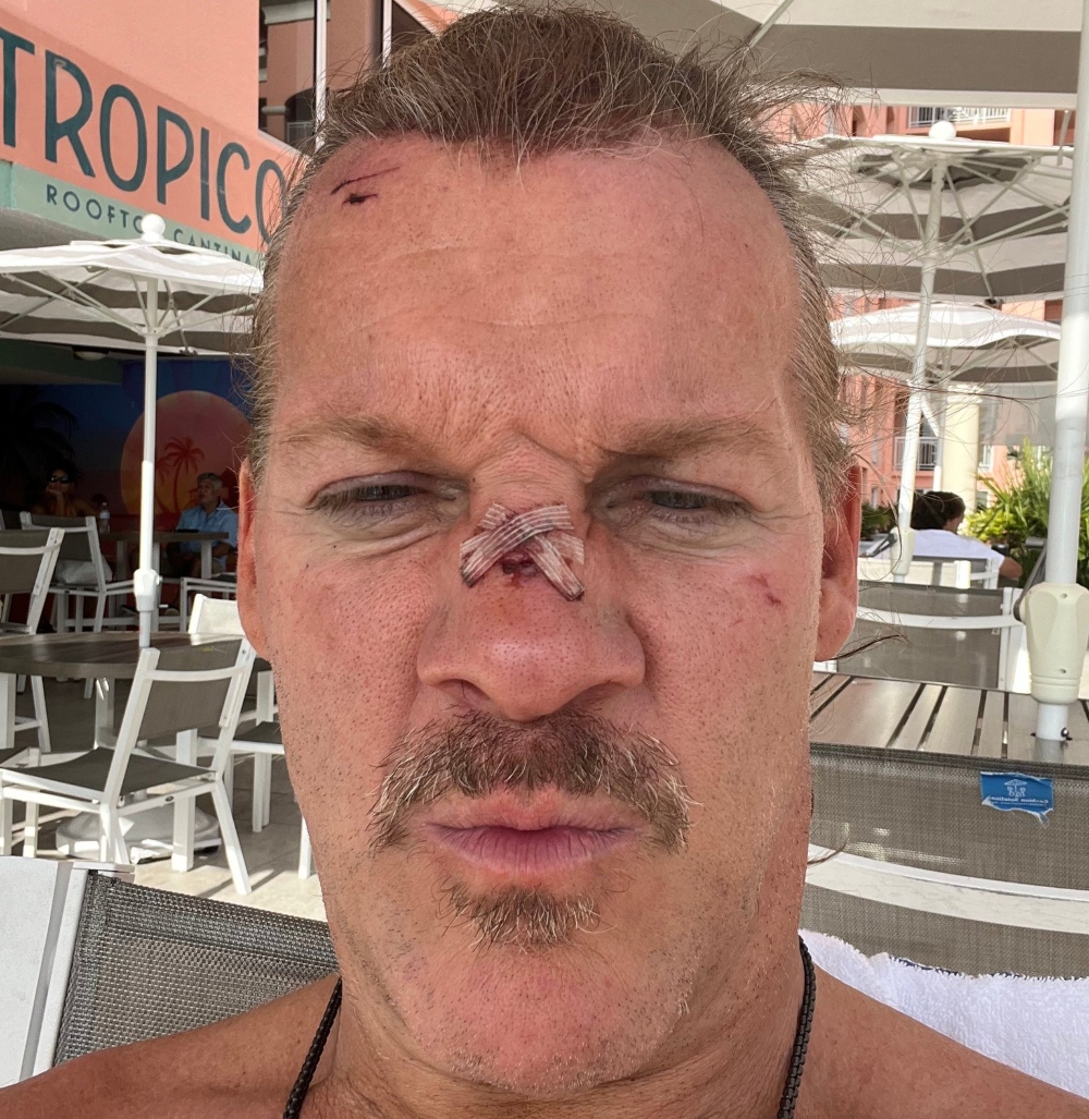 The injury happened during a Codebreaker spot with a barbed wire wrapped chair that accidentally hit Jericho in the face. He immediately checked his nose, which was bleeding, and continued working the match per normal.