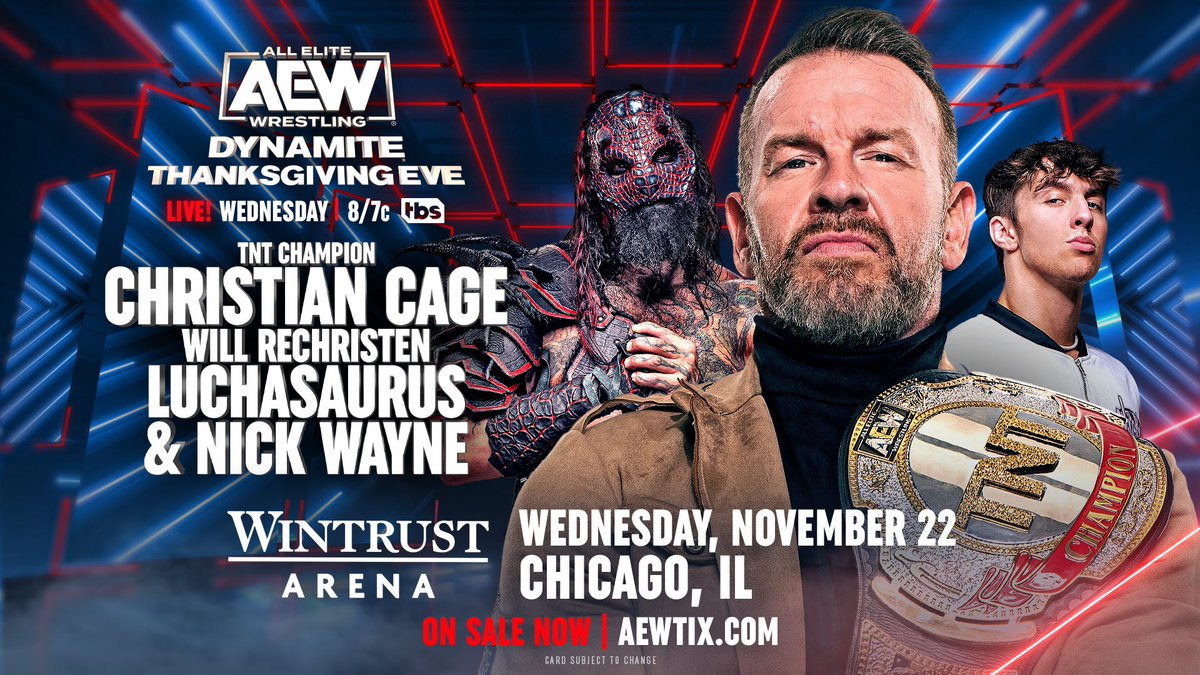 On Dynamite this Wednesday, Christian Cage will “rechristen” Luchasaurus & Nick Wayne. The trio is coming off a loss to Sting, Darby Allin & Adam Copeland at Full Gear.