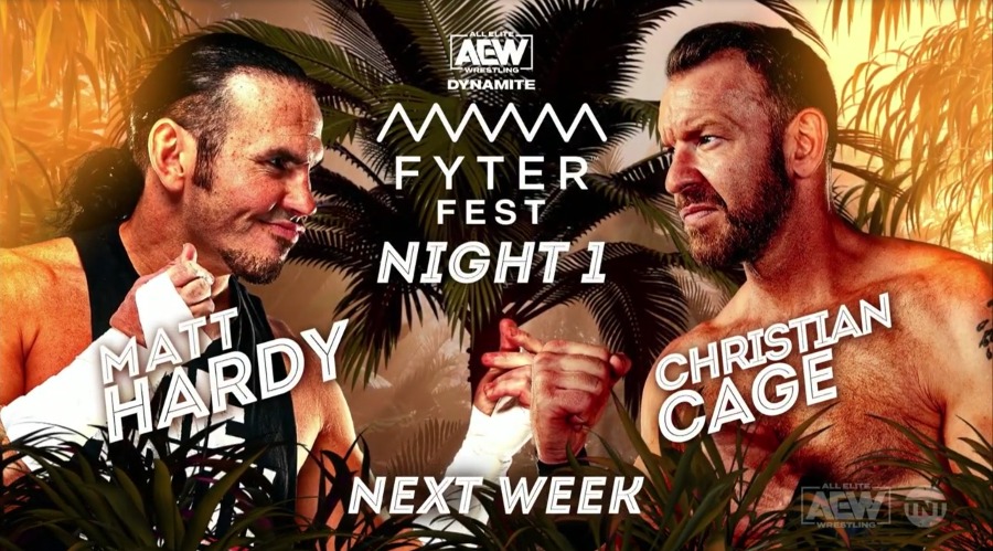 Next week’s kickoff to two weeks of Fyter Fest editions of AEW Dynamite will feature Matt Hardy vs. Christian Cage.