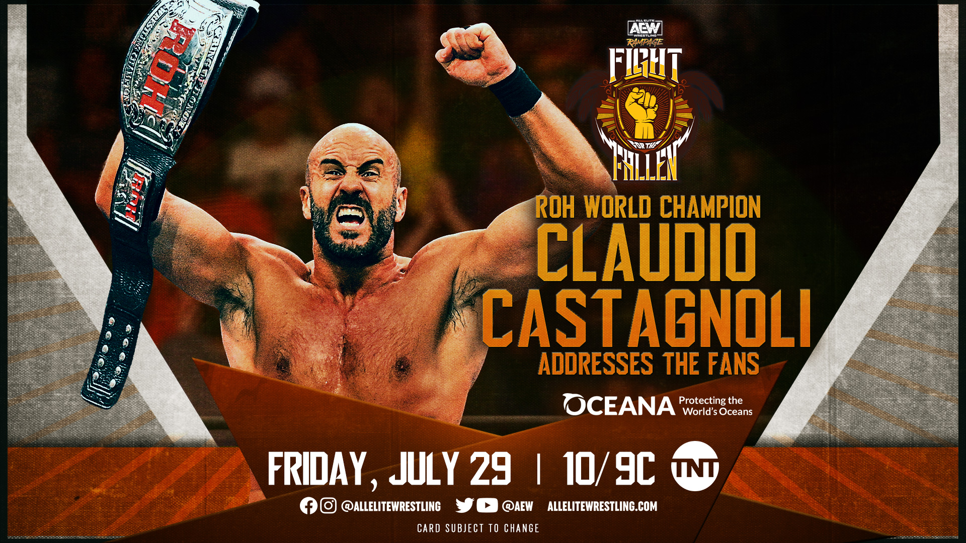 “Saturday @ #ROH’s Death Before Dishonor, @ClaudioCSRO captured his first singles World Title when he won the #ROH World Championship. This Friday night on #AEWRampage: #FightForTheFallen we’ll hear from *NEW* ROH World Champ Claudio Castagnoli @ 10pm ET / 9pm CT & 10pm PT on TNT!” AEW posted to Twitter.